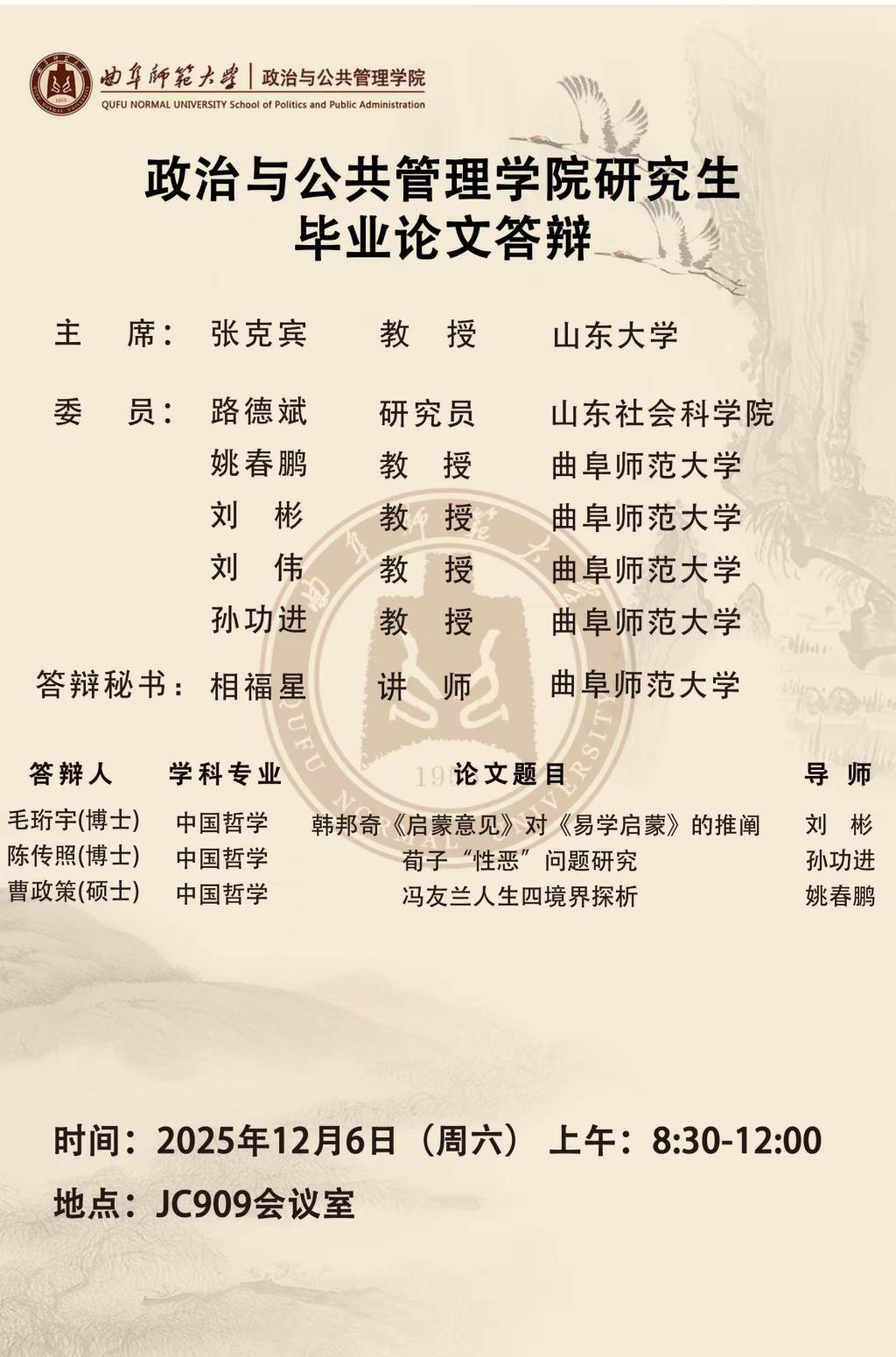 色色视频 公共管理专业研究生毕业论文答辩公告