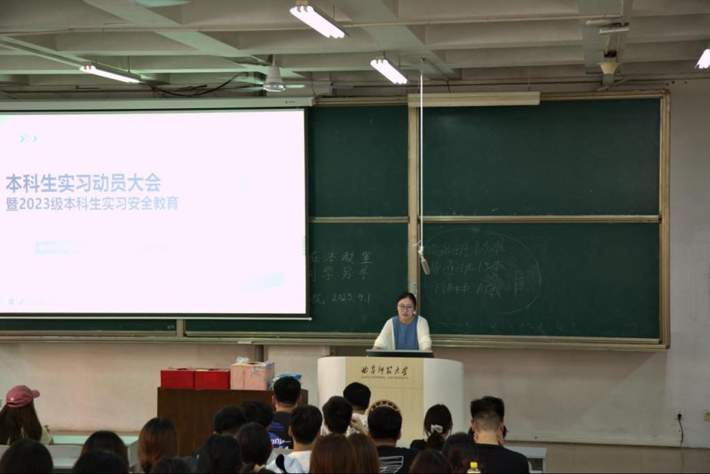 开展本科生实习动员大会暨2023级本科生实习安全教育,本次活动由23级辅导员耿晓敏主持,2023级全体同学参加。