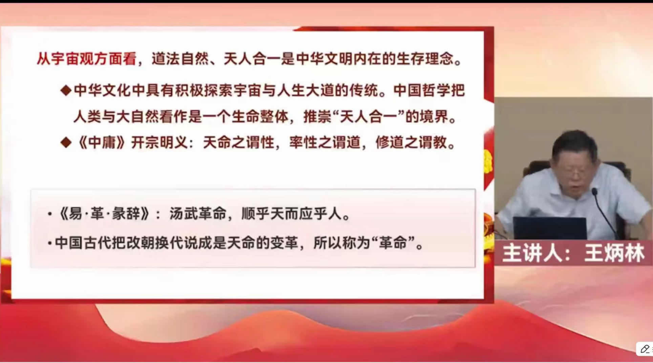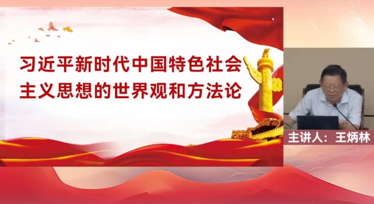 王炳林教授以习近平总书记在文化传承发展座谈会上的重要讲话为切入点,聚焦“习近平新时代中国特色社会主义思想的世界观和方法论”的核心主题,从“两个结合”是马克思主义中国化时代化的根本要求、习近平新时代中国特色社会主义思想的精髓、习近平新时代中国特色社会主义思想的核心要义三个方面展开讲解,深刻阐释了这一思想立足中国实际、植根文化沃土的理论品格,揭示了其在 “两个结合” 中开辟马克思主义中国化时代化新境界的内在逻辑。